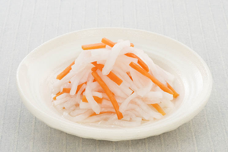 - 3大根とにんじんになますの酢をかけ、混ぜ合わせて味をなじませたら完成。