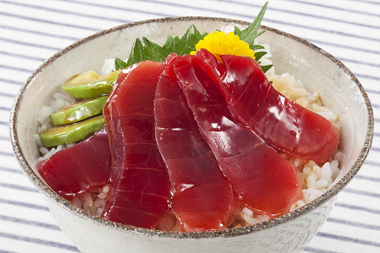 - 3丼にごはんを盛り付けて、②を並べる。 *お好みで大葉、わさび、白ごま、青ねぎなどを添える。