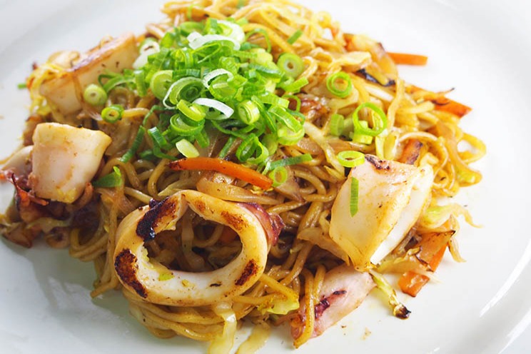 - 1フライパンで、麺に軽く焼き色がつくまで炒める。