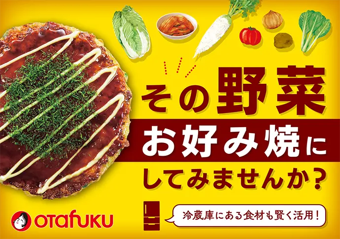 お好み焼はその名の通り、「お好み」の具材を入れて楽しむことができる料理。冷蔵庫にある野菜、ちくわなどの練り物、漬物や納豆、チーズなど、さまざまな食材にマッチします。経済的な損失や環境負荷などに影響を及ぼすフードロス。その対策にお好み焼が一役買います。