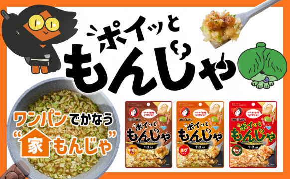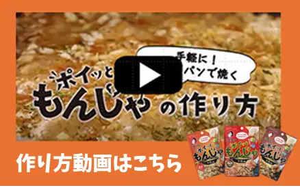 キャベツと水を加えて焼くだけで、もんじゃ焼が楽しめる商品。
