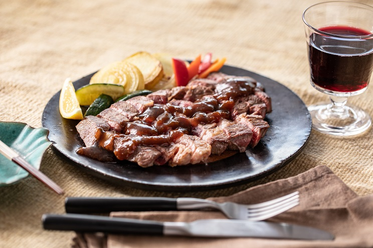 - 2器に盛り、お肉にのせるソース香味野菜をかける。