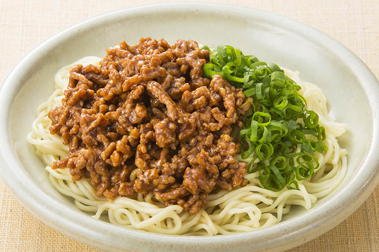 - 2①をボウルに取り出し、汁なし坦々麺のたれ60gをしっかりと和えておく。