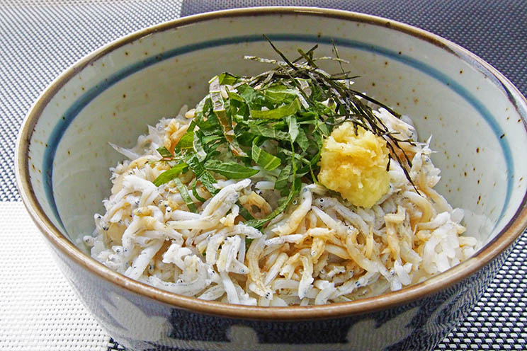 - 1丼にごはんを盛り、釜揚げしらす(あれば生しらすも)をのせる。