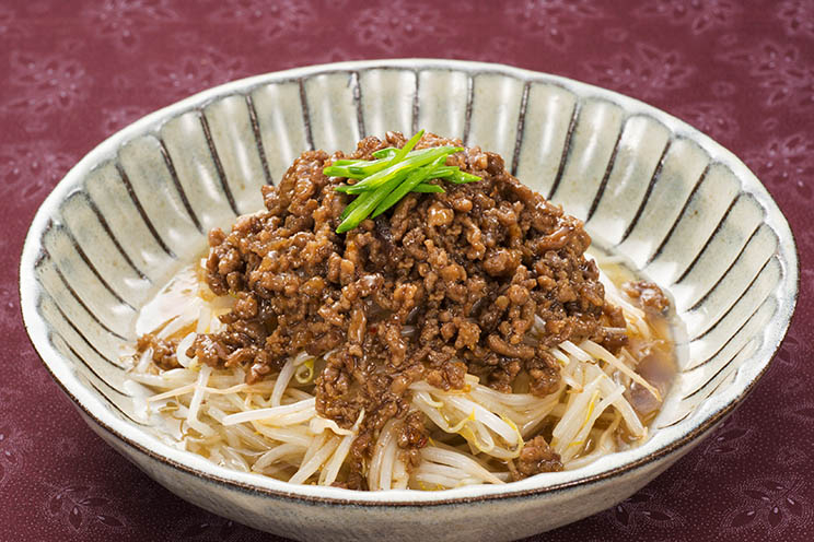 - 2油をひいたフライパンでもやしを炒め、皿に盛り、その上に①をかける。