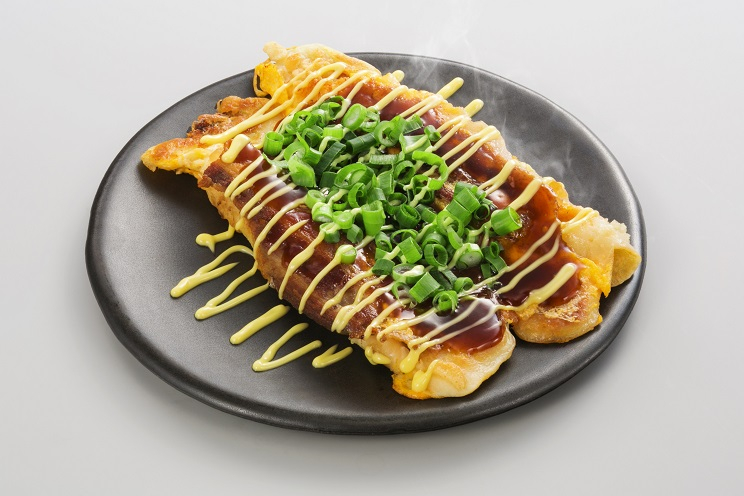 - 3卵が固まる前に、上から生地を半分ずつ、全体が丸くなるようにかける。