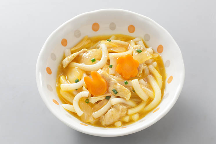 - 4別の鍋を用意し、うどんを食べやすい長さに切り、柔らかめにゆでて水けをきる。