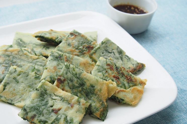 - 2ボウルに水(200ml)、チヂミ粉、卵を入れ、混ぜる。