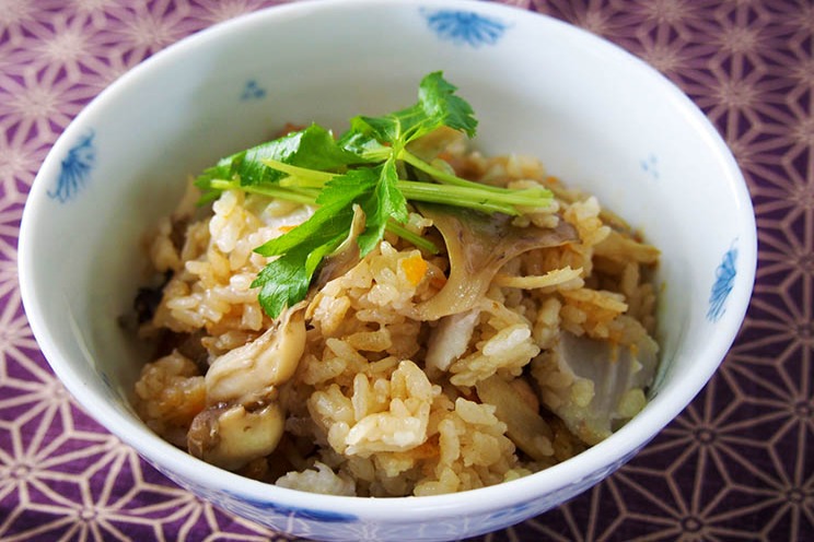 - 5①に②③④を加えて炊きあげ、炊きあがったら蒸してさっくり混ぜる。