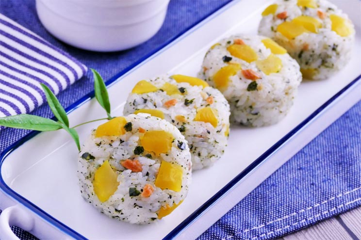 - 1ボウルにごはんとA-Labelふりかけ 鮭を入れて混ぜる。栗の甘露煮も加えて潰さないように混ぜる。
