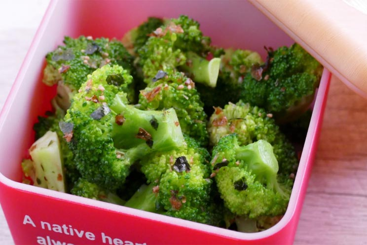 - 3ボウルにブロッコリーを入れて、オリーブオイルを絡ませる。A-Labelふりかけ おかかと塩で味を調える。