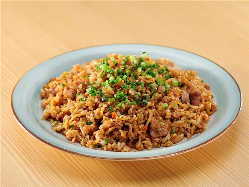 - 6全体がパラっとするまでよく炒め、天かす、最後にねぎを入れて軽く混ぜる。